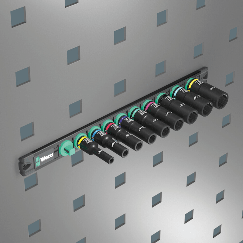 VDE-Wechselklingen (157 mm lang) mit praktischer Zwirbelfunktion, Abrollschutz und Werkzeugfinder Take it easy: Farbkennzeichnung nach Profilen sowie aufgelaserte Größenangabe