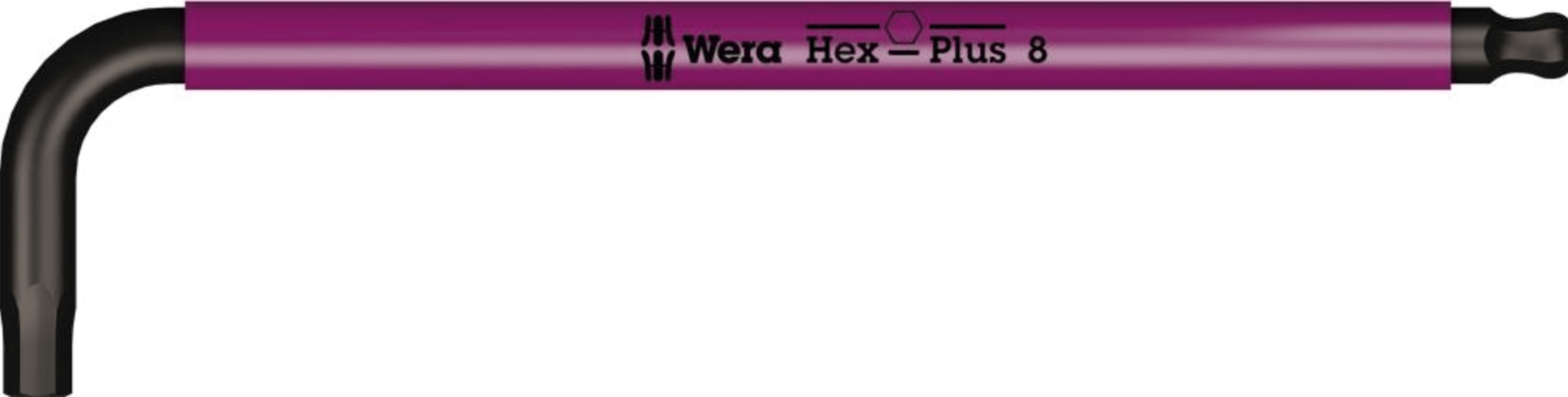 Hochwertiger Wera Winkelschlüssel mit farbcodierter, komfortabler Schlauchummantelung. Dadurch ist das Werkzeug schnell zur Hand und der ergonomische und angenehme Griff schont die Hände auch bei niedrigen Temperaturen. Das Hex Plus Profil bietet größere Anliegeflächen im Schraubenkopf. Die Kerbwirkung wird dadurch auf ein Minimum reduziert, die Zerstörung des Schraubenkopfes nahezu eliminiert. Die Kugel am langen Schenkel erlaubt sicheres Arbeiten auch in schwierigen Einbaulagen. Die BlackLaserOberflächenbehandlung sorgt für hervorragenden Oberflächenschutz, auch vor Korrosion, und lange Lebensdauer. Gelaserte und dadurch abriebfeste Größenkennzeichnung auf dem Winkelschlüssel für schnellen Zugriff.