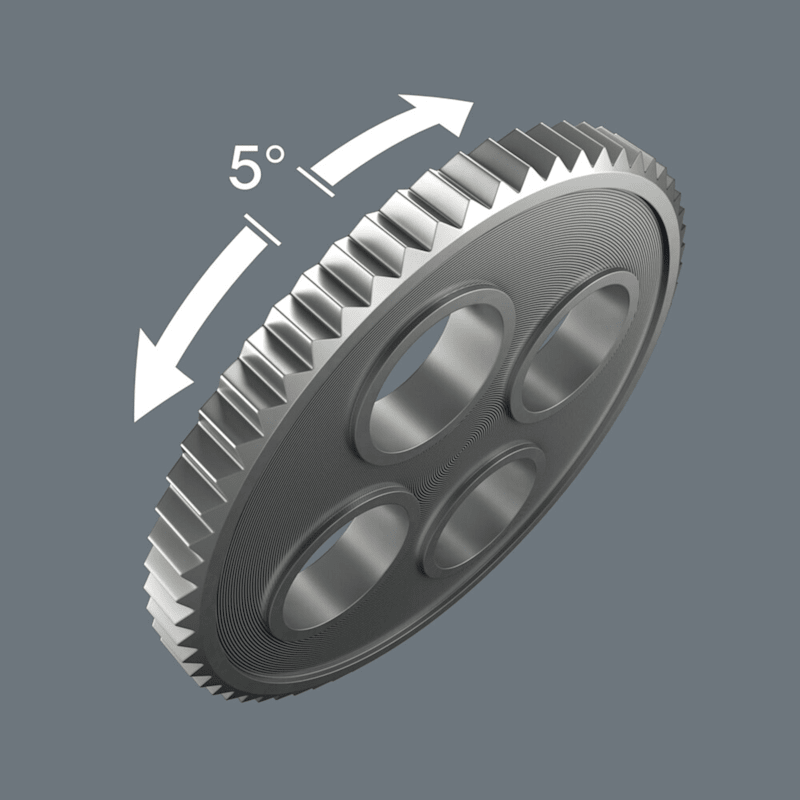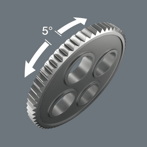 Feinverzahnung, daher kleiner Rückholwinkel von 5°