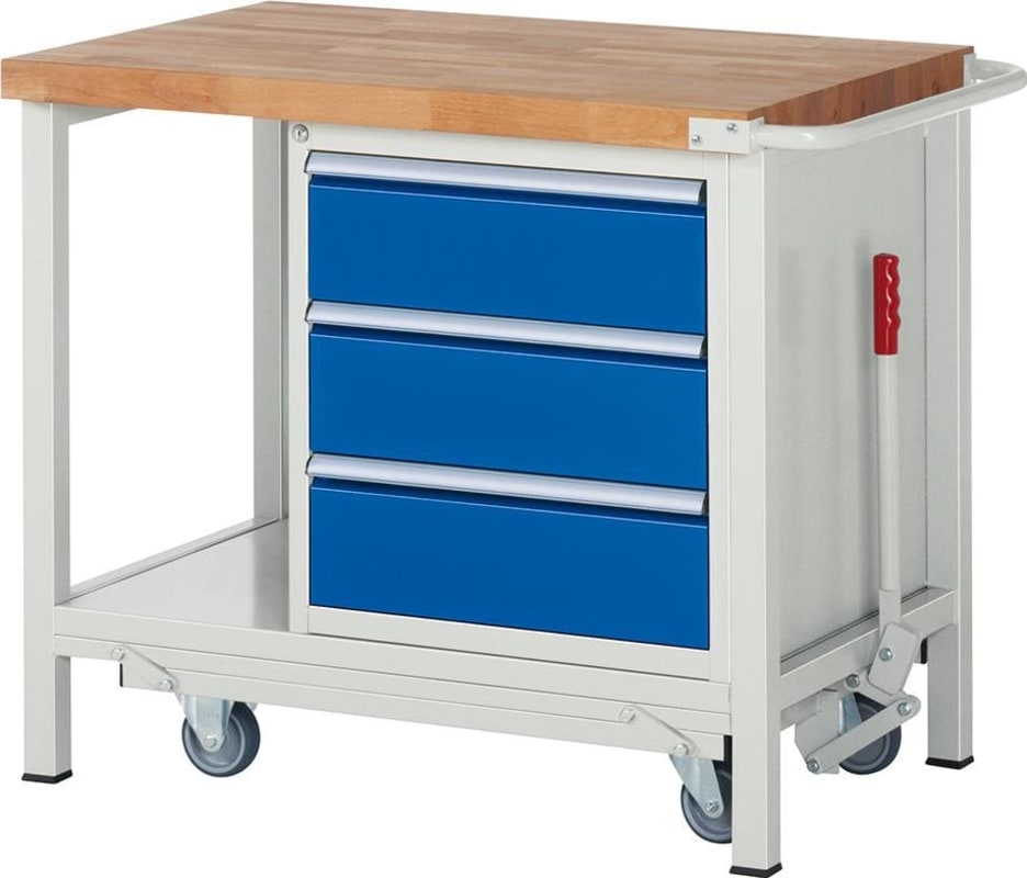Mobile Werkbank, absenkbar, 3 Schubladen, 1 Stahlblech-Ablageboden