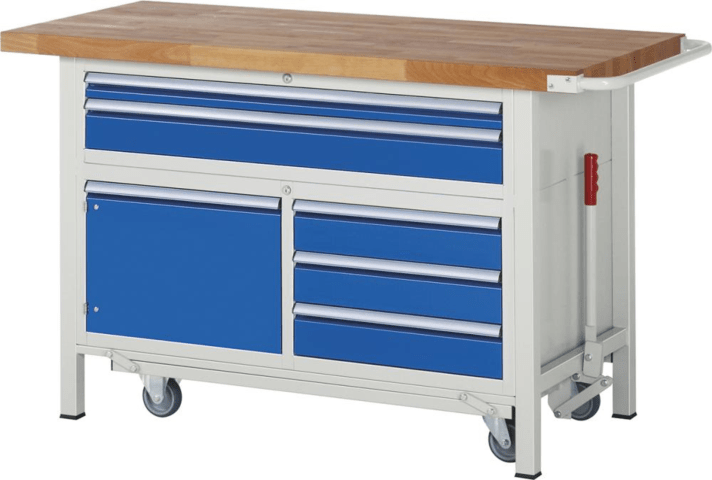 Mobile Werkbank, absenkbar, 5 Schubladen, 1 Tür