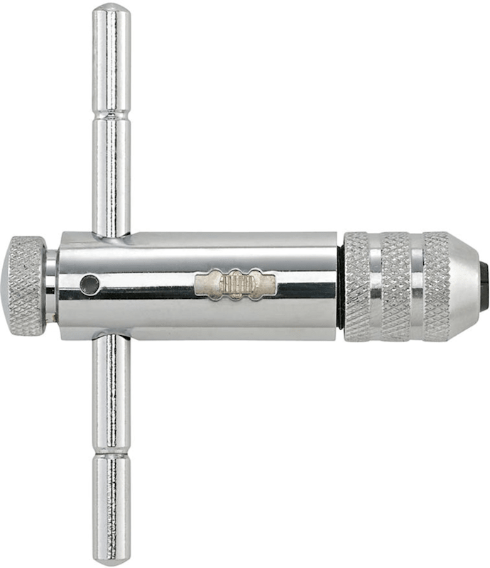 Werkzeughalte • Verchromte Ganzstahlausführun • Knarre umschaltbar für Rechtsgang, Linksgang oder fes • Mit gehärteten, parallelspannenden, auswechselbaren Backe • Verstellbarer Quergrif • Zum Spannen von 4-kant-Schäften