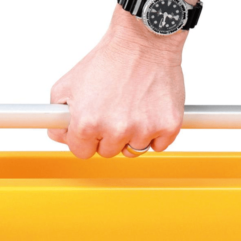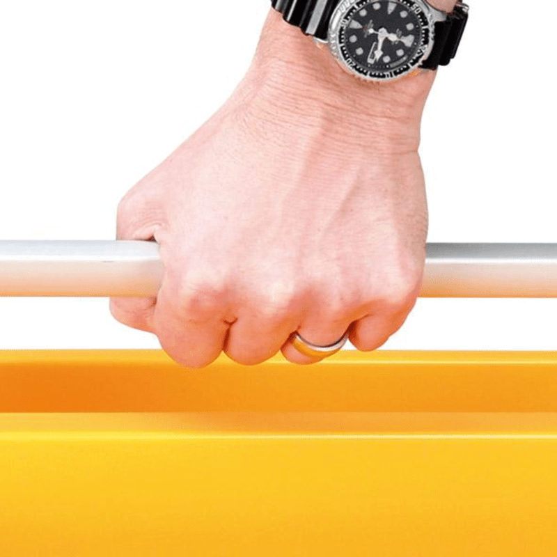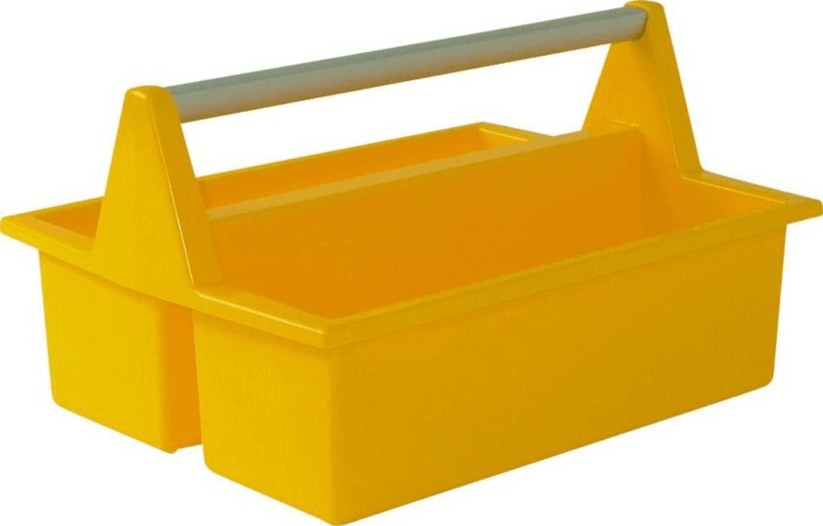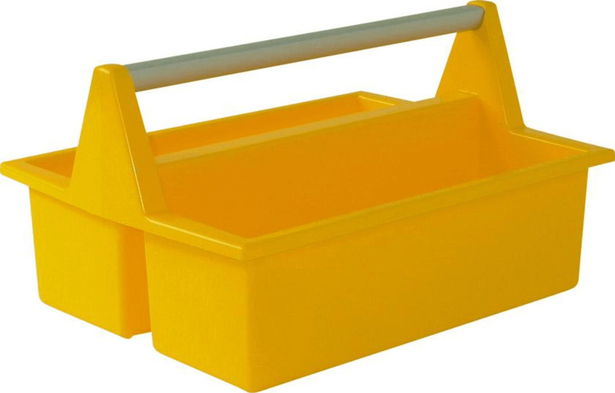 Werkzeugkasten • Stabiler Kunststoffkasten • Mit 2 offenen Stauflächen und Tragegriff aus Aluminium • Farbe: gelb