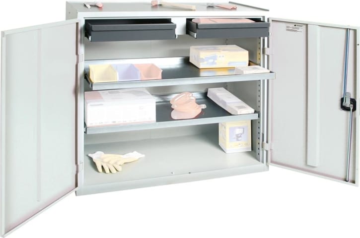 Werkzeug- und Materialschrank Serie 3000, 2 Schubladen, 2 Wannenböden • Geeignet für alle betrieblichen Bereiche • Material: Qualitätsfeinblech, verschweißt • Oberfläche: pulverbeschichtet, unempfind