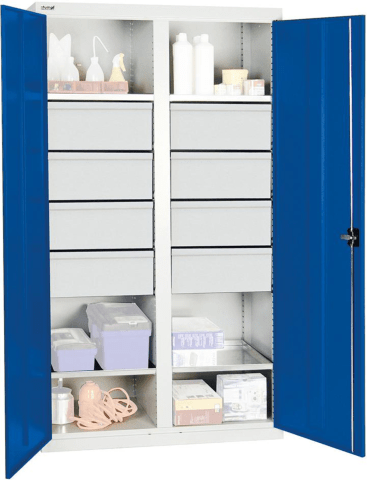 Werkzeug- und Materialschrank Serie 2000, 8 Schubladen, 4 Fachböden, Mitteltrennwand • Geeignet für Produktionsbereiche • Material: Qualitätsfeinblech, verschweißt • Oberfläche: pulverbeschichtet, un
