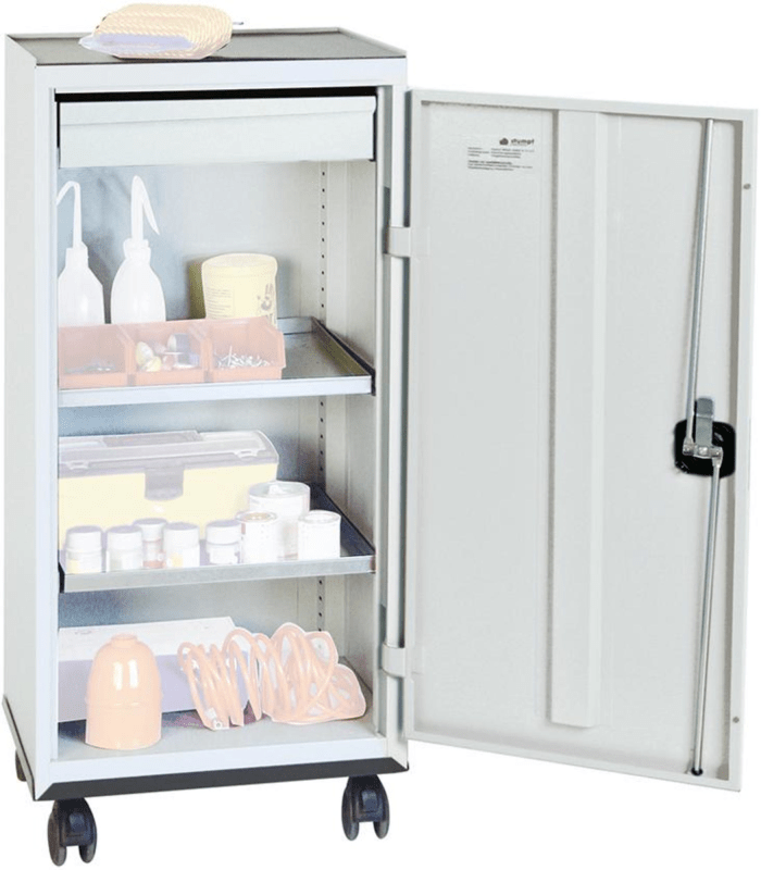 Werkzeug- und Materialschrank Serie 2000, fahrbar, 1 Schublade, 2 Fachböden • Geeignet für Produktionsbereiche • Material: Qualitätsfeinblech, verschweißt • Oberfläche: pulverbeschichtet, unempfindli