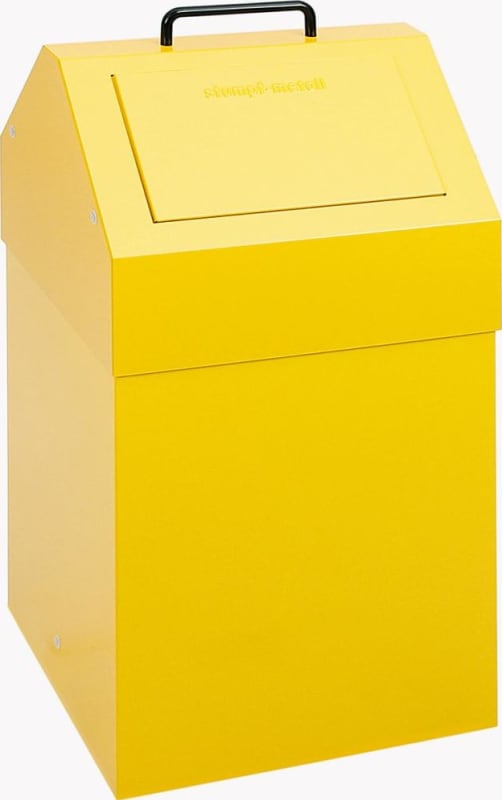 Wertstoffsammler, stationär • Material: Stahlblech, verzinkt • Oberfläche: pulverbeschichtet • Innenbehälter: verzinkt • Feuerhemmend und nicht brennbar gemäß DIN 4102 • Geruchshemmend • Mit abnehmba