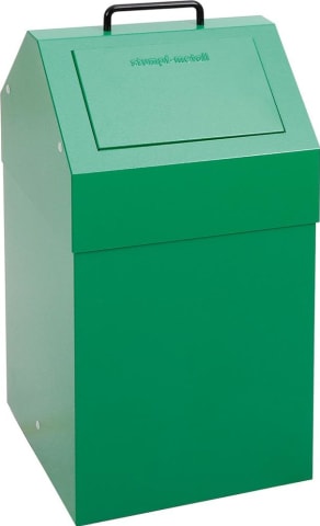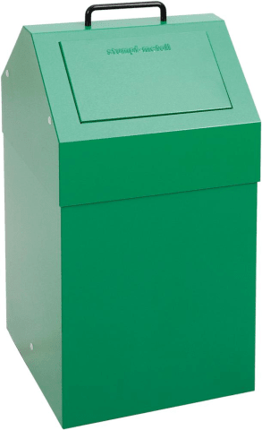 Wertstoffsammler, stationär • Material: Stahlblech, verzinkt • Oberfläche: pulverbeschichtet • Innenbehälter: verzinkt • Feuerhemmend und nicht brennbar gemäß DIN 4102 • Geruchshemmend • Mit abnehmba