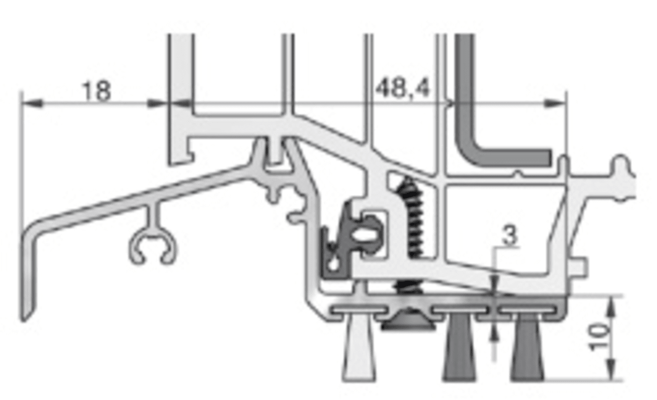 Wetterschenkelprofil zu Schwellensystem "COMBI", inklusive 4 Bürstendichtungen, 1950 mm lang, passend zu Brügmann BluEvolution, Salamander BluEvolution, EV 1