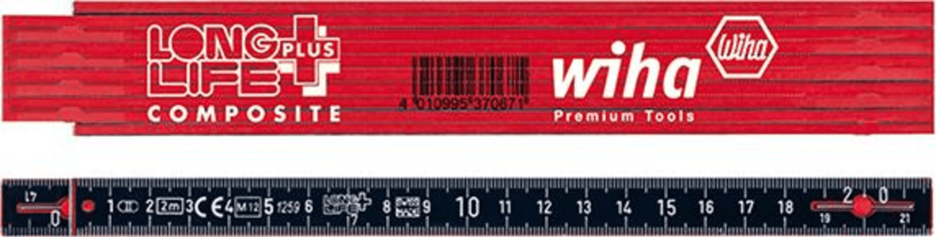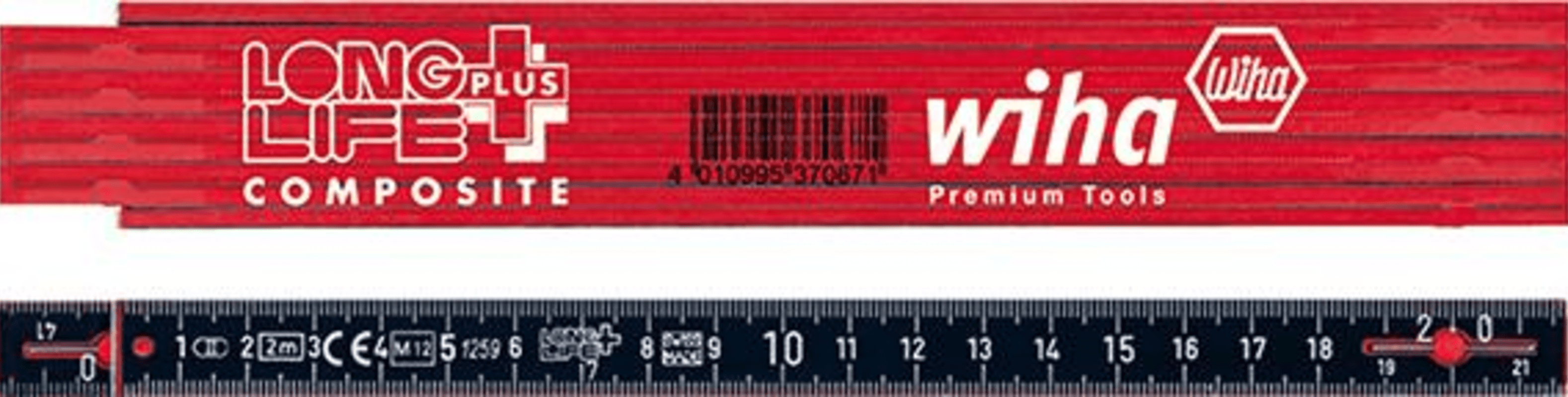 Meesenburg Artikelbezeichnung: WIHA 4102005 LONGLIFE® PLUS COMPOSITE 2M GLIEDERMASSSTAB KST 14MM ROT/SCHW. 37067
