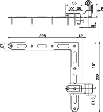 Winkelband BLR seitliche Regulierung mit Kröpfung 45-70 AT=18 L=228 Gr.2 schwarz-S