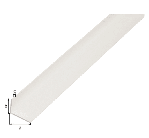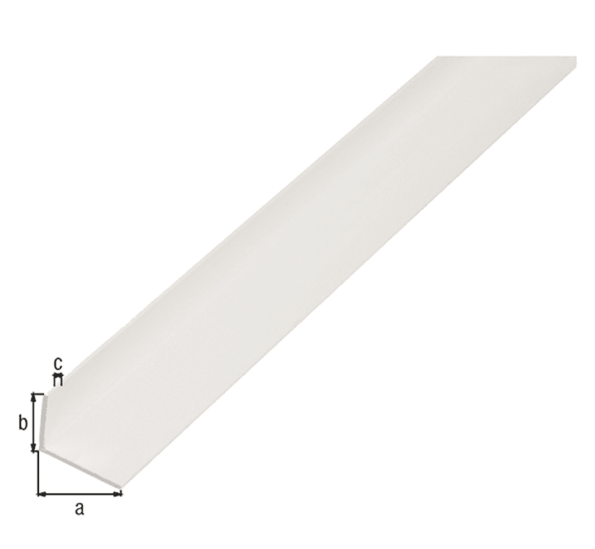 GAH Alberts Winkelprofil; Material: Kunststoff; Länge: 2.000mm; Basis: Winkelprofil; Ausführung: ungleichschenkelig; Oberfläche: durchgefärbt; Farbe: weiß; Breite: 25mm; Höhe: 20mm; Stärke: 2mm; Lochung: ungelocht; Maß b: 20mm; Maß a: 25mm; Maß c: 2mm