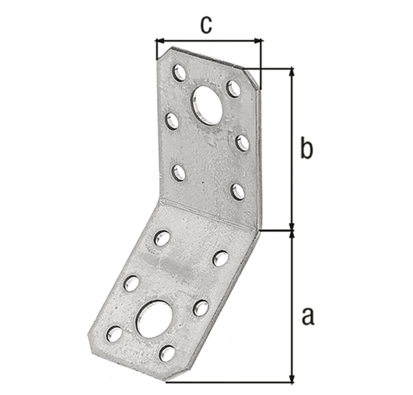 GAH Alberts Winkel; Basis: Winkel; Ausführung: gleichschenkelig; Werkstoff: Stahl; Oberfläche: sendzimirverzinkt; Anwendungsbereich: Holz/Holz Anschlüsse; Einsatzbereich: Holzverbindung; Form: kantig; Lochdurchmesser: 11 mm; Material: Stahl roh; Winkelung: 135 °; Höhe: 90 mm; Befestigungsart: zum Nageln; Stärke: 3 mm; Anzahl Schraublöcher: 4 St.; Breite: 40 mm; Anzahl Nagelloch horizontaler Schenkel: 8 St.; Durchmesser Nagelloch horizontaler Schenkel: 5 mm; Durchmesser Nagelloch vertikaler Schenkel: 5 mm; Anzahl Nagelloch vertikaler Schenkel: 8 St.; Schraublochausführung: Rundkopf; Tiefe: 90 mm