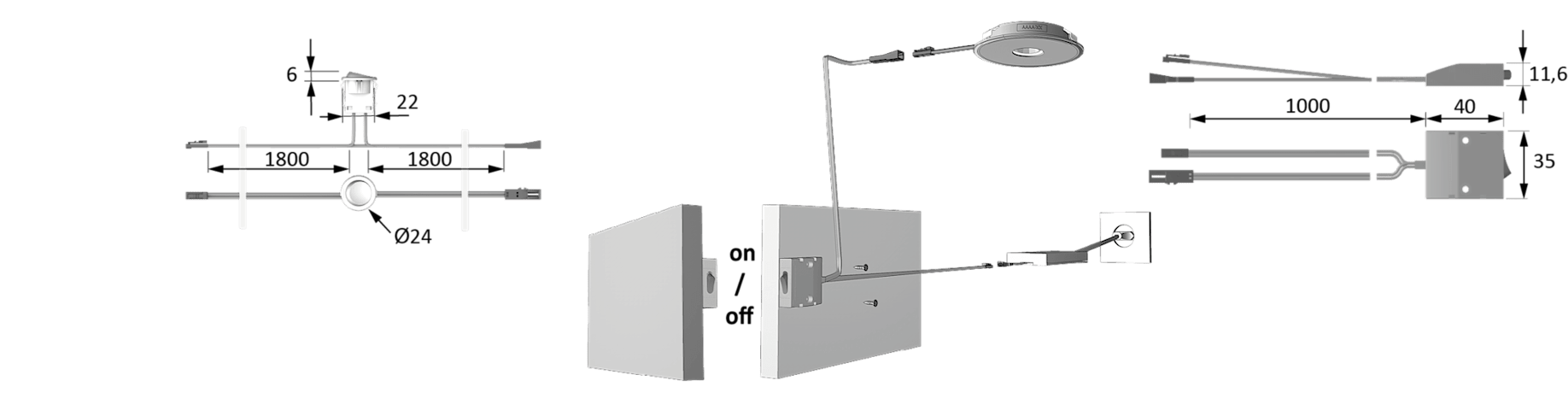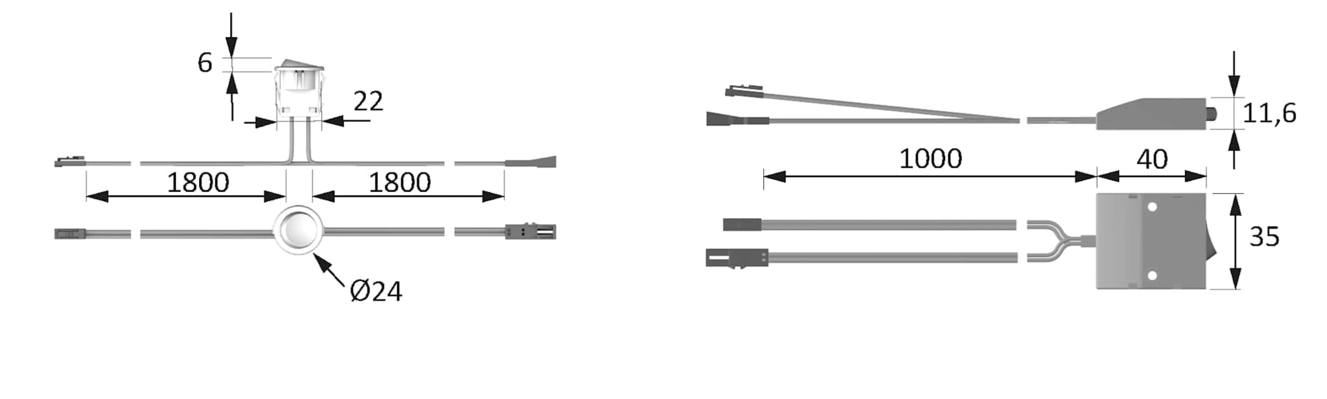 WIPPSCHALTER 12VDC ALU OP. MAX. 36W LTG 1,8M M1 3697481