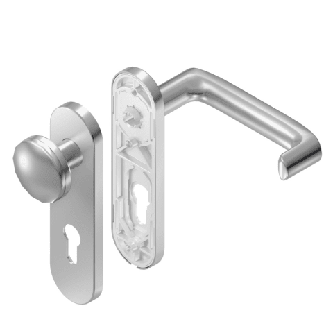 BKS Wechselgarnitur DIRIGENT B-72210; Material: Edelstahl; Befestigungsart: verdeckt verschraubt; Befestigungstechnik: mit Stütznocken; Vierkant: 9 mm; Befestigungssystem: Stiftverbindung; Abdeckung: