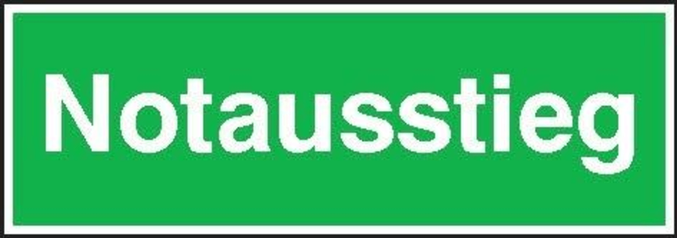 Rettungsschild, Notausstieg• Langnachleuchtend, DIN 67510-1 Klasse C