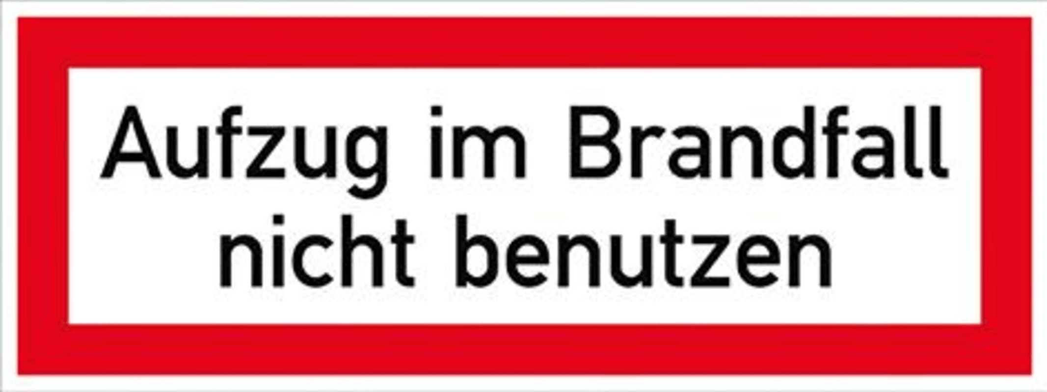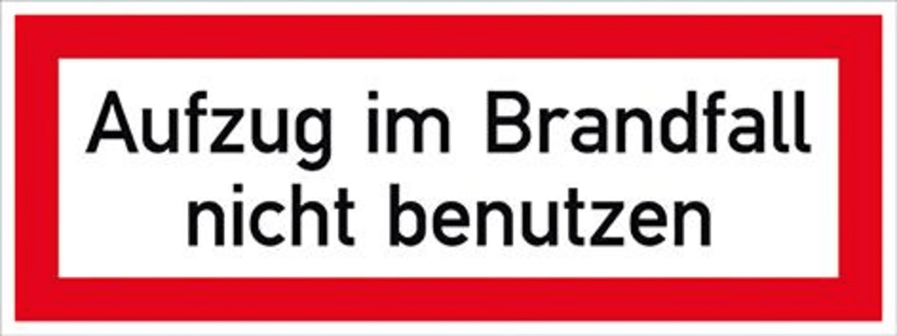Hinweisschild, Aufzug im Brandfall nicht benutzen