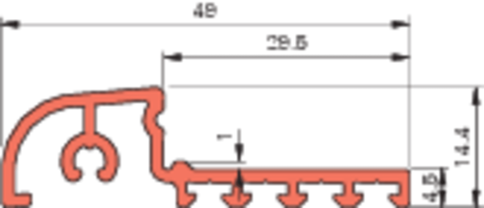 ROTO Wetterschenkel Komfort; Material: Aluminium; Einsatzbereich: Fenstertüren; Basis: Wetterschenkel; Tiefe: 49 mm; Höhe: 14,4 mm; Farbe Endkappe: grau; Länge: 6.000 mm; Oberfläche: eloxiert; Farbton