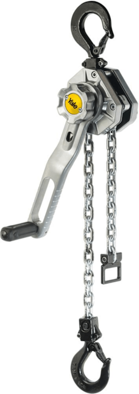Handflaschenzug YaleErgo® 360• Gehäuse: leichtes, hochfestes Aluminium, Oberfläche pulverbeschichtet und wetterfest • Gegossenes Kettenendstück: ermöglicht einfaches und sicheres Greifen der Kette •
