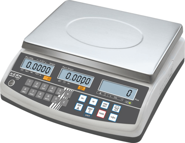 Zählwaage Typ CFS • Wägeplatte: Edelstahl • Display: LCD mit Ziffernhöhe 20 mm, Hintergrund-Beleuchtung • Stromversorgung: Netzadapter 230 V/50 Hz • Funktionen: Zählen, Wiegen, Tarieren • Anzeigen: Gewicht, Referenzgewicht, Stückzahl • Ziel-Stückzahl: programmierbar für Checkweighing mit optischen Signal • Zählsummen-Speicher: Aufsummieren von gleichen Zählteilen in Gesamtstück/Gewicht Hinweis: Mit dieser Zählwaage kann man nicht eichpflichtige Wägungen durchführen.