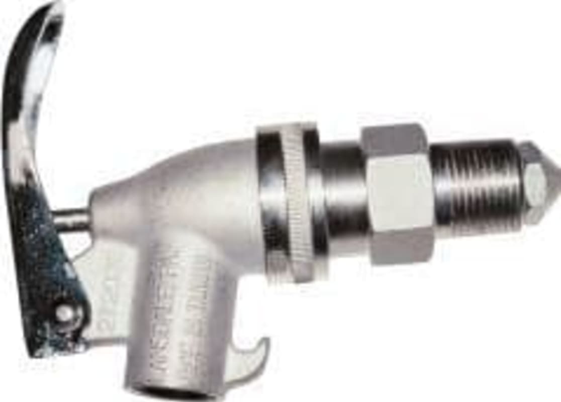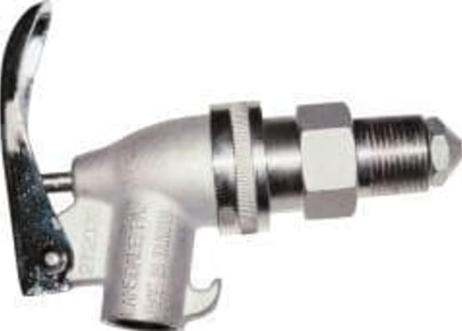 Sicherheitszapfhahn, Edelstahl • Material: Edelstahl • Gewinde: 19,05 mm (3/4") • Selbstschließend • Entnahmeposition verstellbar • Für Flüssigkeiten