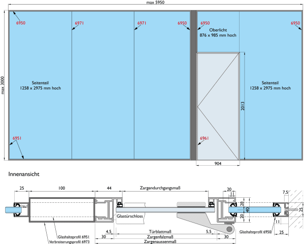 Zargen Verbreiterungsprofil 6973, 100 x 40 mm, für Schalterdoseneinbau geeignet, Länge 3000 mm, F9 (Edelstahlfarben)