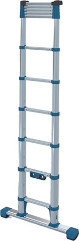 Der Platz-Weltmeister: kleinstes Format für den Transport, aber sicherer Stand auf breiten Sprossen. Zusammengeschoben passt die Leiter in jeden Kofferraum. Verschiedene Höhen einstellbar – mehrere Le