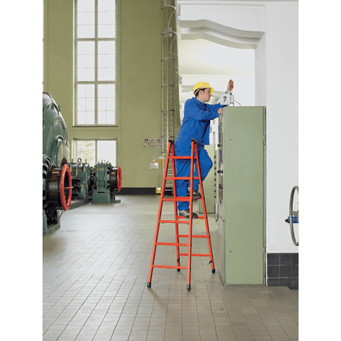 Für den flexiblen Einsatz in elektrischem oder chemischem Umfeld sowie für Arbeiten unter Spannung. Holme und Sprossen (30 x 30 mm) aus glasfaserverstärktem Kunststoff für besonders hohe chemische Bes