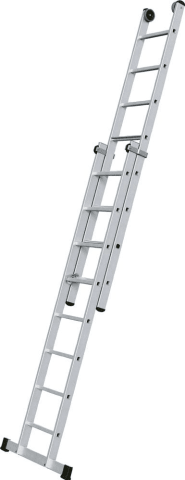 ZARGES Everest Plus 2E: Sicherer ganz oben stehen. Die Schiebeleiter mit 80 mm tiefen Stufen statt Sprossen in der Oberleiter. -Besonders leicht aufgrund der Kombination von Stufen- und Sprossenleiter (Hybridbauweise). -Oberleiter mit Kunststofflaufrollen ausgestattet. -Höhenverstellbar im Raster von 280 mm. -Sichere Arretierung durch Haken mit Abhebesicherung. -Leiterbreite: 420 mm. -Holme und Führungsbeschläge aus Alu-Strangpressprofilen für höchste Sicherheit. -Auswechselbare Kunststoffschuhe für rutschsicheren Stand. Entspricht der Norm EN 131 professional.