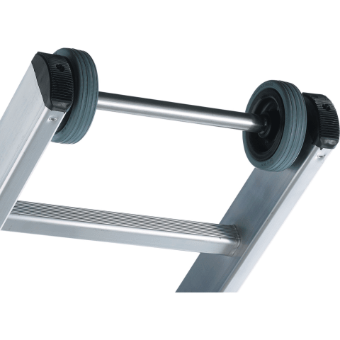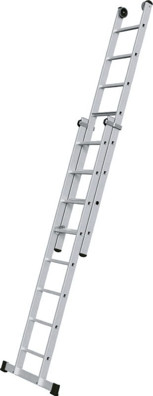 Sicherer ganz oben stehen. Die Schiebeleiter mit 80 mm tiefen Stufen statt Sprossen in der Oberleiter. Besonders leicht aufgrund der Kombination von Stufen- und Sprossenleiter (Hybridbauweise). Oberleiter mit Kunststofflaufrollen ausgestattet. Höhenverstellbar im Raster von 280 mm. Sichere Arretierung durch Haken mit Abhebesicherung. Leiterbreite: 420 mm.