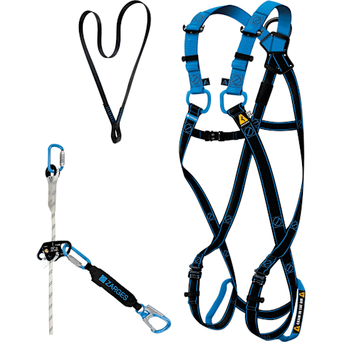 Set bestehend aus: Auffanggurt Salvex S-M (47800) oder L-XXL (47801), AXIC-FA (47812) und Bandschlinge (47824).