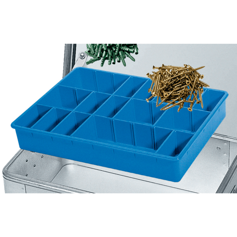 Kleinteilekasten. Das Sortiersystem für kleine Teile zum Selbsteinbau. Mit 21 steckbaren Teilern aus Polypropylen (PP). Passend zu Baureihen Eurobox und ZARGES Box.