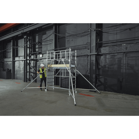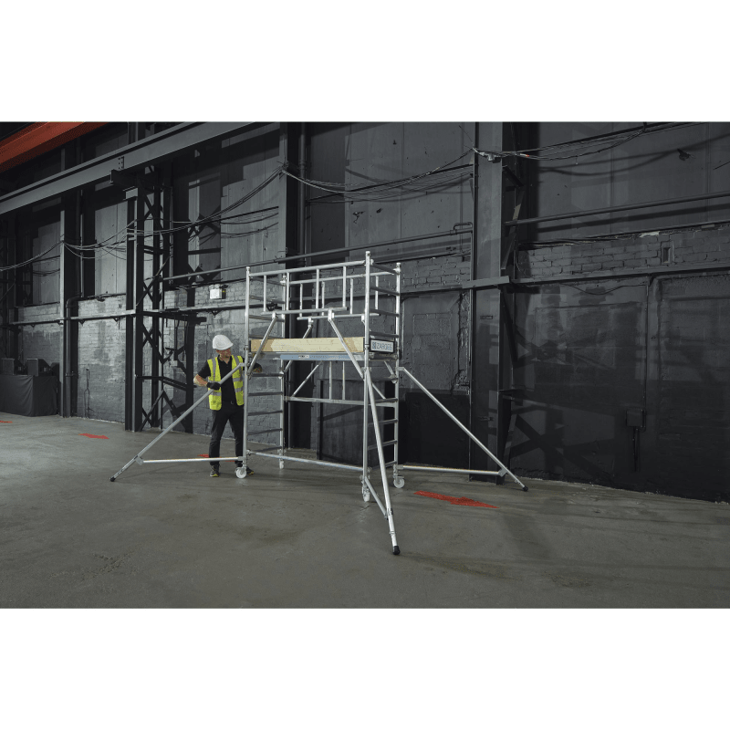 ZARGES PaxTower S-PLUS 1T: Mit vorlaufenden Geländer nach neuer EN 1004-1. -Einfache Einhandbedienung des Klapprahmens mit robustem Arretierknopf: Feststellen und lösen mit nur einem Klick. -Patentierte Bordbrett-Einheit: Schnell platziert, schnell fixiert. -Leichtlauf-Aufsteckführung aus Hartkunststoff: Kein Verkanten beim Zusammenführen der Aufsteckrahmen. -Gerüstlänge: 1,80 m; Gerüstbreite: 0,72 m. -Sicherer und schnellerer Aufbau durch vorlaufende Geländer und Plattformen im 2m-Abstand. -Nach neuer EN 1004; Gerüstklasse 3 (belastbar bis 200kg/m²). -125 mm Lenkrollen mit Feststellbremse; diese sind durch Rollenadapter (Bestell-Nr. 42794) zu spindelbaren Rollen aufrüstbar. -Holm- und Sprossendurchmesser 45 mm.