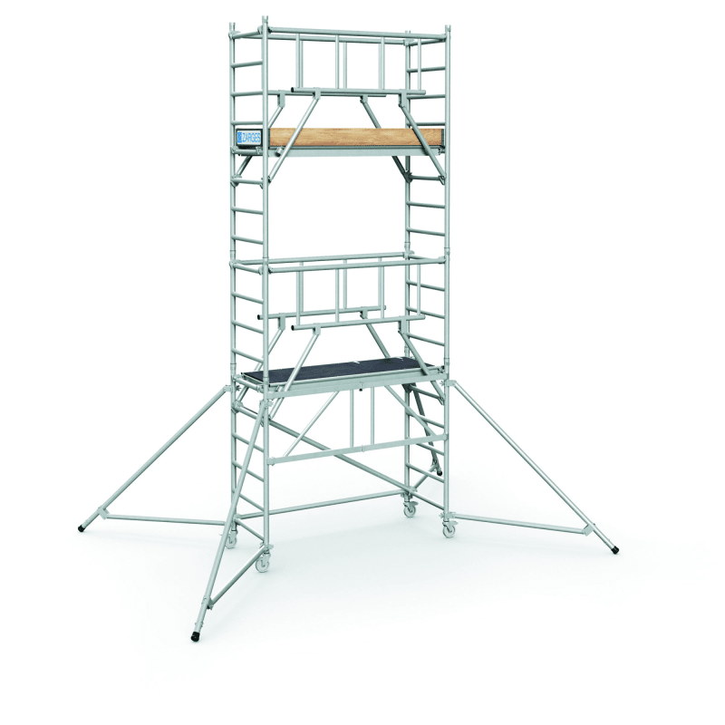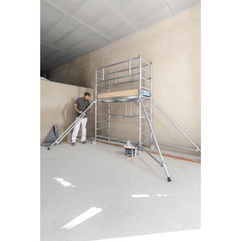 ZARGES PaxTower S-PLUS 1T: Mit vorlaufenden Geländer nach neuer EN 1004-1. -Einfache Einhandbedienung des Klapprahmens mit robustem Arretierknopf: Feststellen und lösen mit nur einem Klick. -Patentierte Bordbrett-Einheit: Schnell platziert, schnell fixiert. -Leichtlauf-Aufsteckführung aus Hartkunststoff: Kein Verkanten beim Zusammenführen der Aufsteckrahmen. -Gerüstlänge: 1,80 m; Gerüstbreite: 0,72 m. -Sicherer und schnellerer Aufbau durch vorlaufende Geländer und Plattformen im 2m-Abstand. -Nach neuer EN 1004; Gerüstklasse 3 (belastbar bis 200kg/m²). -125 mm Lenkrollen mit Feststellbremse; diese sind durch Rollenadapter (Bestell-Nr. 42794) zu spindelbaren Rollen aufrüstbar. -Holm- und Sprossendurchmesser 45 mm.