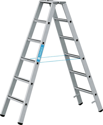 ZARGES Saferstep B: Die Komfort-Version für den flexiblen Einsatz mit hoher Sicherheit dank Safer Step Technology und angenehmem Griffgefühl. -Stufe mit ZARGES Safer Step Technology, 80 mm tief. -Holme abriebfest eloxiert. -Scharniere aus Aluminium Druckguss. -Spreizsicherung durch hochfeste Perlongurte. -Auswechselbare 2-Komponenten-Kunststoffschuhe für rutschsicheren Stand und zugleich festen Sitz im Holm. -Maximale Arbeitshöhen durch 280 mm hohen Antritt. Entspricht der Norm EN 131 professional.