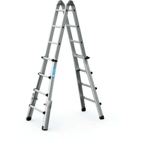 Multifunktionale, ausziehbare und treppengängige Leiter mit kompaktem Transportmaß in robuster, langlebiger Ausführung.