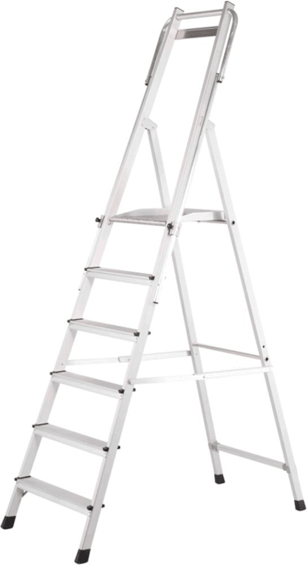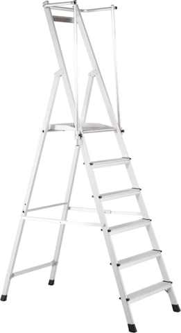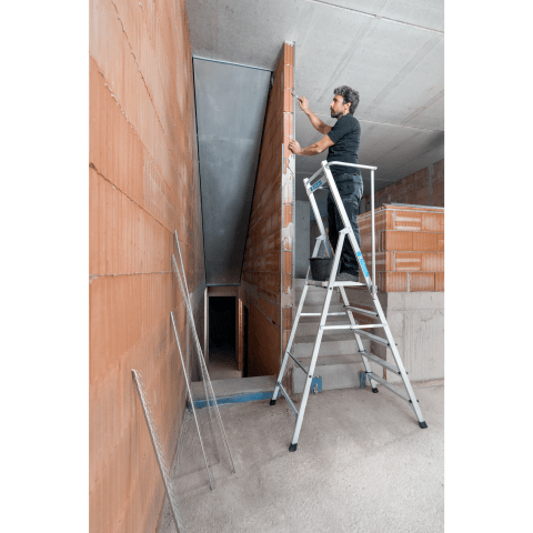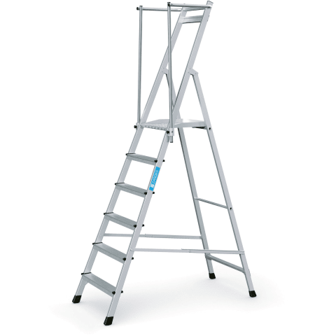 Die superleichte Plattformleiter: Leicht im Gewicht, handlich dank klappbarer Handläufe und komfortabel durch die große Plattform.