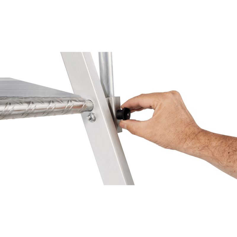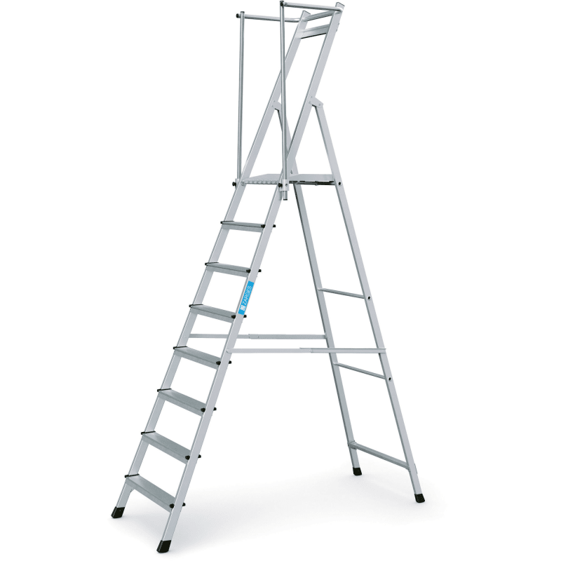 Die superleichte Plattformleiter: Leicht im Gewicht, handlich dank klappbarer Handläufe und komfortabel durch die große Plattform.