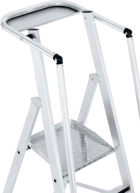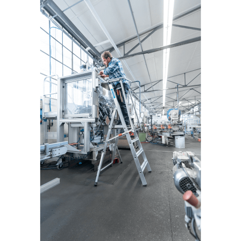 -80 mm tiefe Stufen mit ZARGES Safer Step Technology für ermüdungsfreies Stehen.
