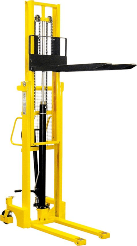 Hochhubwagen, manuell- 2 Hubhöhen: 1600 mm (Einfachmast) oder 2500 mm (Teleskopmast)- Hubbetrieb durch Deichsel oder Fußpedal- Deichselgriff gummiert, 3 Funktionen- Verschleißfeste Polyurethanbereifung- Lenkrollen mit Feststellvorrichtung und Fußschutz gem. Norm- Acryllackierung, RAL 1023 verkehrsgelb