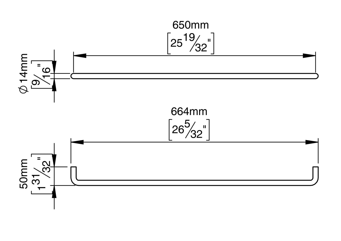 Knud Holscher Kollektion, Zuggriff 14, gerade, 650mm, Gewinde M8. Hergestellt aus hochwertigem, rostfreiem Edelstahl AISI 316, der vor starker Korrosion schützt. Zertifiziert nach EN 1906 bis ---A----