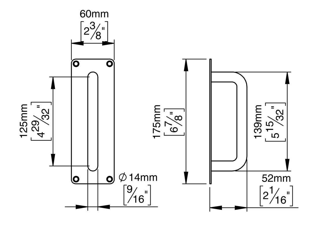 ZIEHGRIFF 14X125 MESSING AUF SCHILD 175X60X2 (144011P3125)