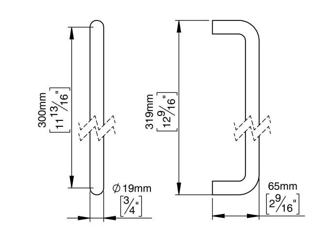 Knud Holscher Kollektion, Zuggriff 19, gerade, 300mm, Buchse. Hergestellt aus hochwertigem, rostfreiem Edelstahl AISI 316, der vor starker Korrosion schützt. Zertifiziert nach EN 1906 bis ---A----. 20 Jahre Garantie.
