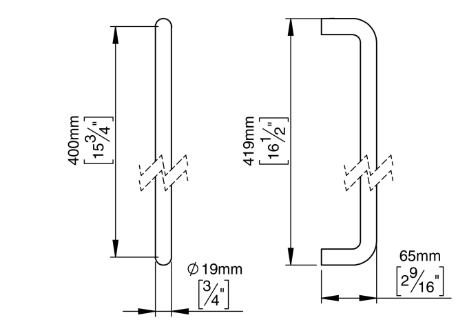 ZIEHGRIFF 19 GERADE 400 BUCHSE RAL9005 (144214R1404)