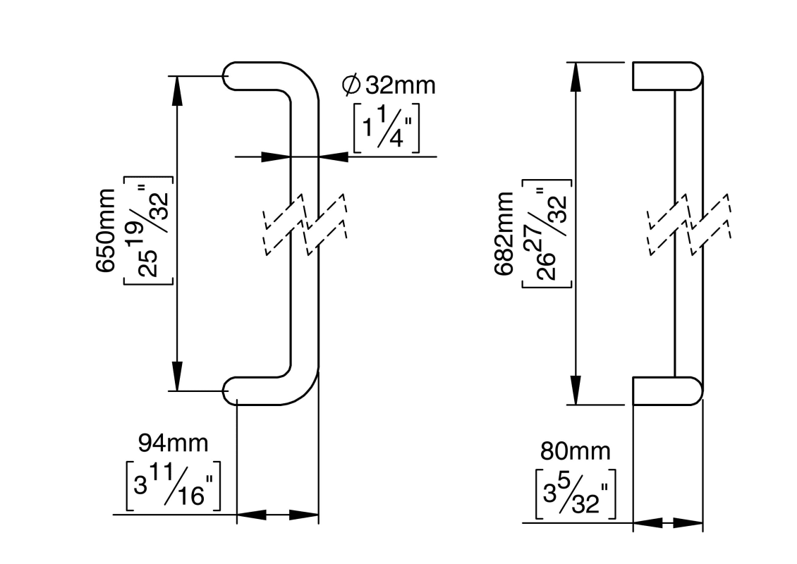 Knud Holscher Kollektion, Zuggriff 32, gekröpft, 300mm, Gewinde M12. Hergestellt aus hochwertigem, rostfreiem Edelstahl AISI 316, der vor starker Korrosion schützt. Zertifiziert in Übereinstimmung mit EN 1906 bis ---A----. 20 Jahre Garantie.