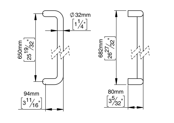 Knud Holscher Kollektion, Zuggriff 32, gekröpft, 650mm, Buchse. Hergestellt aus hochwertigem, rostfreiem Edelstahl AISI 316, der vor starker Korrosion schützt. Zertifiziert in Übereinstimmung mit EN 1906 bis ---A----. 20 Jahre Garantie.