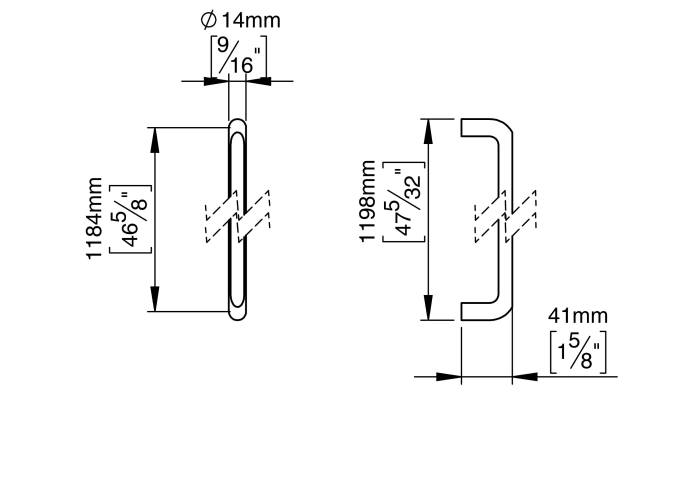Cubo Kollektion, Zuggriff Cut, 14x1184mm, gerade Kante, Gewinde M5. Hergestellt aus hochwertigem, rostfreiem Edelstahl AISI 316, der vor starker Korrosion schützt. Zertifiziert nach EN 1906 bis 47-B1140U. 20 Jahre Garantie.