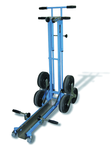 Dieser spezieller Transport- und Heberoller ermöglicht es einer Person, Türen, Platten, Fenster und andere flächige Bauelemente alleine über Hindernisse, z. B. Treppen zu transportieren.