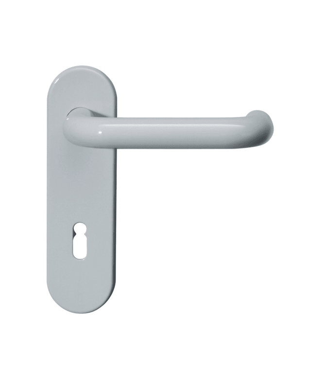HEWI Drückergarnitur 111R01.110; Produkttyp: Drückergarnitur; Produkttyp (Hersteller): Drückergarnitur; Ausführung: Kurzschild; Befestigungsart: verdeckt verschraubt; Befestigungstechnik: mit Stütznocken; Form: oval; Vierkant: 8/10 mm; Material: Kunststoff; Material Unterkonstruktion: Kunststoff-Edelstahlverbundbau; Form Türgriff (innen): U-Form; Ausführung Türgriff (innen): mit Stahlkern; Form Türgriff (außen): U-Form; Ausführung Türgriff (außen): mit Stahlkern; Durchmesser Türgriff (innen): 20 mm; Durchmesser Türgriff (außen): 20 mm; Länge Türgriff (innen): 138 mm; Länge Türgriff (außen): 138 mm; Höhe Türgriff (innen): 65,5 mm; Höhe Türgriff (außen): 65,5 mm; Schildbreite außen: 46 mm; Schildbreite innen: 46 mm; Schildlänge außen: 168 mm; Schildlänge innen: 168 mm; Schildstärke außen: 11 mm; Schildstärke innen: 11 mm; Lagerung: festdrehbar,Doppellager; Einsatzbereich: Zimmertür,Objekttür; Türart: Vollblatt; Türwerkstoff: Stahl,Holz; Norm: DIN EN 1906,DIN 18255,DIN EN 179,DIN 18040; Zulassung: für Fluchttüren; Anwendung: außen/innen; Lochung: Buntbart gelocht; Entfernung: 72 mm; DIN-Richtung: DIN Links-Rechts; Farbe: grau; Farbton: anthrazitgrau; Oberfläche: hochglanz; Technik: R-Technik; Ausführung Vierkant: Vierkantstift; Türstärke min.: 38,1 mm; Türstärke max.: 48 mm