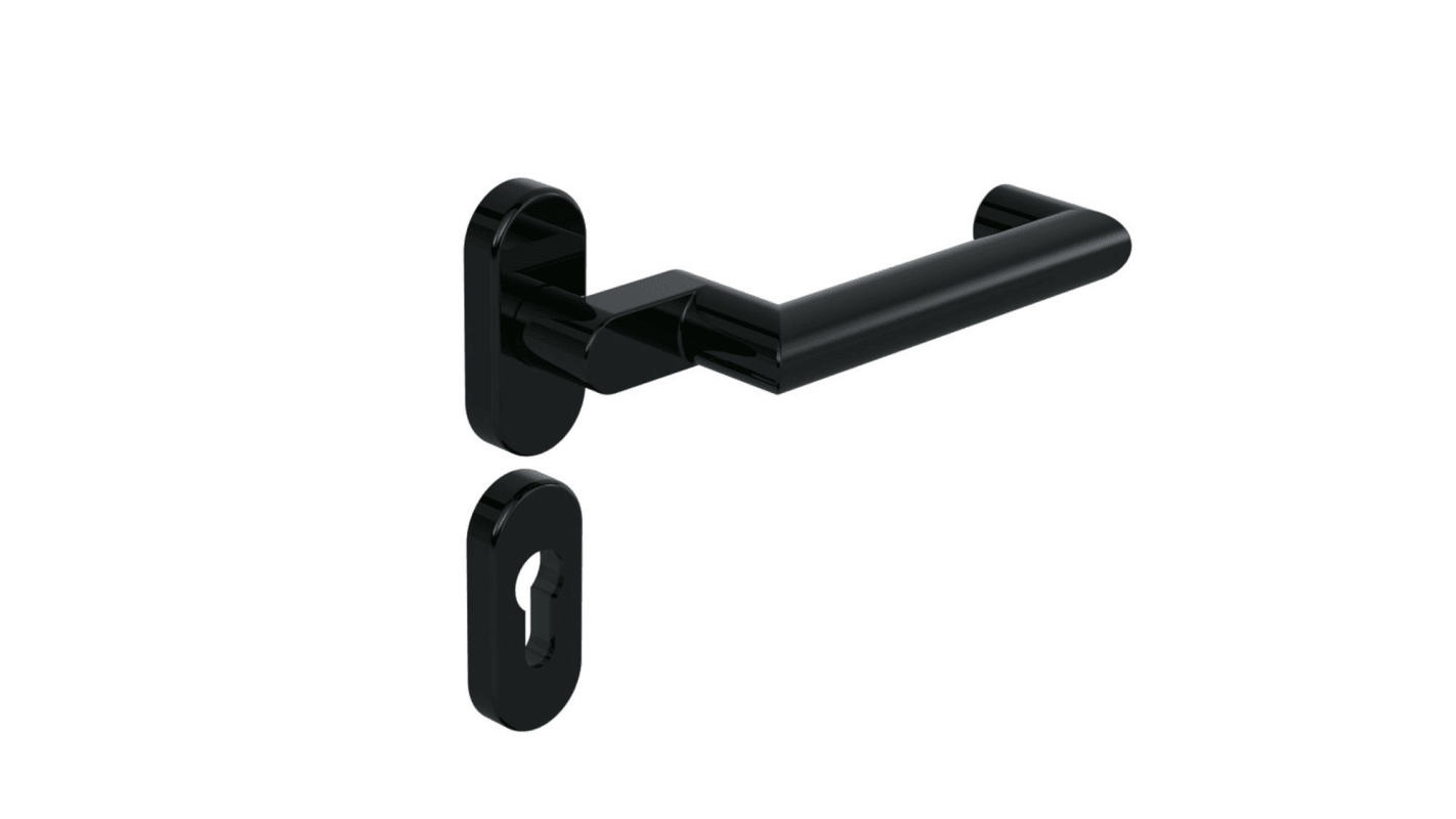 HEWI Drückergarnitur 162PCR01.640; Produkttyp: Drückergarnitur; Produkttyp (Hersteller): Drückergarnitur; Ausführung: Rosette; Befestigungsart Drückerrosette (außen): verdeckt verschraubt; Befestigungsart Drückerrosette (innen): verdeckt verschraubt; Befestigungstechnik: ohne Stütznocken; Montageart: aufliegend; Form Drückerrosette: oval; Form Schlüsselrosette (außen): oval; Form Schlüsselrosette (innen): oval; Vierkant: 8,5 mm; Material: Kunststoff; Material Türdrücker: Kunststoff; Material Rosetteneinleger: Kunststoff; Material Unterkonstruktion (Griffrosette): Kunststoff-Stahlverbundbau; Form Türgriff (innen): Gehrung,gekröpft,U-Form; Form Türgriff (außen): Gehrung,gekröpft,U-Form; Durchmesser Türgriff (innen): 21,3 mm; Durchmesser Türgriff (außen): 21,3 mm; Länge Türgriff (innen): 170 mm; Länge Türgriff (außen): 170 mm; Höhe Türgriff (innen): 66 mm; Höhe Türgriff (außen): 66 mm; Breite Drückerrosette (außen): 32 mm; Breite Drückerrosette (innen): 32 mm; Länge Drückerrosette (außen): 72 mm; Länge Drückerrosette (innen): 72 mm; Höhe Drückerrosette (außen): 12 mm; Höhe Drückerrosette (innen): 12 mm; Breite Schlüsselrosette (außen): 32 mm; Breite Schlüsselrosette (innen): 32 mm; Länge Schlüsselrosette (außen): 72 mm; Länge Schlüsselrosette (innen): 72 mm; Höhe Schlüsselrosette (außen): 12 mm; Höhe Schlüsselrosette (innen): 12 mm; Lagerung: wartungsfreies Gleitlager,festdrehbar; Einsatzbereich: Objekttür,Zimmertür; Türart: Vollblatt; Türwerkstoff: Stahl,Holz; Lochung: Buntbart gelocht; DIN-Richtung: DIN Links-Rechts; Material Rosette: Kunststoff; Farbe: schwarz; Farbton: tiefschwarz; Oberfläche: hochglanz; Oberfläche Türdrücker: beschichtet; Oberfläche Rosette: beschichtet; Oberfläche Rosetteneinleger: beschichtet; Material Unterkonstruktion (Schlüsselrosette): Kunststoff-Stahlverbundbau; Technik: R-Technik; Ausführung Vierkant: Vierkantstift; Türstärke min.: 38,1 mm; Türstärke max.: 48 mm; Norm: DIN EN 1906,DIN 18255